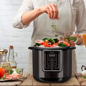 Panela de pressão elétrica com capacidade de 3 litros, ideal para preparar refeições rápidas e saborosas. Possui design moderno e elegante, com acabamento em inox. Conta com funções como cozimento rápido, cozimento lento, manter aquecido e timer. Possui sistema de segurança que garante o funcionamento seguro do produto.Lâmpada piloto
