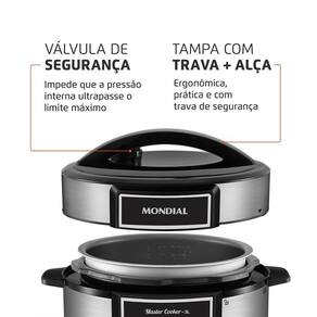 A Panela Elétrica Mondial Master Cooker Pe-40 127V é perfeita para preparar suas receitas com praticidade e agilidade. Com capacidade de 3 litros, ela é produzida em aço inox preto, trazendo um toque de cor e sofisticação para sua cozinha. Com 14 funções programáveis e timer, você pode programar o funcionamento da panela com até 24 horas de antecedência. O display digital facilita a visualização das funções de tempo e temperatura, tornando o uso ainda mais prático. A cuba interna é antiaderente e removível, o que facilita a limpeza após o uso. Além disso, você pode até colocá-la na máquina de lavar louça. A tampa da panela possui alça ergonômica, térmica e com trava, garantindo sua segurança na hora de cozinhar. E com a válvula de segurança, você pode usar a panela com tranquilidade. Marca: Não Informado