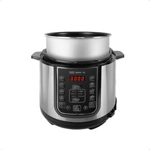 Painel digital intuitivo com funções pré-programadas, múltiplos sistemas de segurança, design em aço inox escovado, cuba interna removível com revestimento antiaderente, função manter aquecido.Lâmpada piloto
