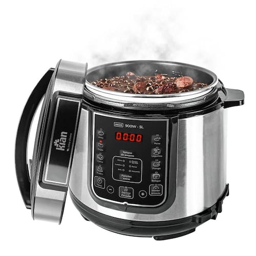 Praticidade e segurança na cozinha com a Panela de Pressão Elétrica 5L 900W! Ideal para o preparo de receitas rápidas e saborosas, ela conta com controle de temperatura, timer ajustável e travas de segurança. Seu design moderno e capacidade de 5 litros são perfeitos para famílias que valorizam refeições bem-feitas e sem complicações. Transforme sua rotina com tecnologia e eficiência!