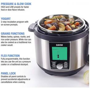 Possui mais de 33 configurações programáveis, incluindo: Ovos Cozidos, Carnes, Feijões, Sopa, Risoto, Vegetais, Omelete, Cheesecake e muito mais! A função Arroz Branco cozinha o arroz como uma panela tradicional, utilizando apenas vapor. A função Flex permite usar a unidade como panela de pressão ou panela tradicional. Já a função Iogurte oferece um processo fácil de 2 etapas para preparar iogurte caseiro.