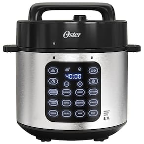 Panela elétrica de pressão Oster A Panela Elétrica de Pressão Digital Multifuncional Oster é a panela de pressão elétrica com o maior número de sistemas de segurança do mercado brasileiro. Com 18 dispositivos de segurança, 12 funções pré-programadas e 5,7 L de capacidade, ela foi desenvolvida para famílias que valorizam refeições saudáveis e momentos de qualidade compartilhados. Tecnologia avançada que se encaixa na rotina, oferecendo funcionalidade e tranquilidade no preparo do dia a dia.