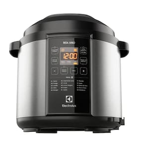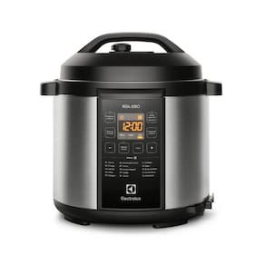 Panela de Pressão Elétrica Electrolux Experience PCC20 com 15 receitas pré-programadas, 3 níveis de pressão, função Cozimento Lento, 10 dispositivos de segurança, panela interna antiaderente de 6 litros, display LED com timer de até 24 horas e cabo removível.Lâmpada piloto