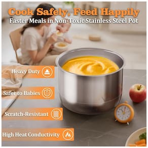 Versatilidade DualPot: Alterne facilmente entre a panela premium de aço inoxidável 304 para refeições substanciais e a panela de cerâmica antiaderente para pratos delicados, tudo em uma única panela. Potência de Cozimento Turbo: 1,7x a pressão atmosférica desbloqueia resultados de qualidade de restaurante em uma fração do tempo - um cozido macio em apenas 40 minutos contra 2 horas no fogão! Maestria Culinária 12 em 1: Cozinhe à pressão, ensopados, arroz, refogue, asse e muito mais - perfeito para tudo, desde arroz soltinho até sobremesas decadentes. Segurança Inteligente, Controle Sem Esforço: Sistema de liberação de vapor mais seguro com desligamento automático. Proteção contra superaquecimento para operação sem preocupações. Trava de tampa com um toque para uso intuitivo. Limpeza? Feita em Segundos: Tanto as panelas quanto a tampa são seguras para lava-louças - sem esfregar, sem complicações. Refeições Planejadas Perfeitamente: Programe e esqueça! Início com atraso de 24 horas garante refeições quentes exatamente quando deseja. Inspiração de Receitas Bônus: Estimule sua criatividade com um livro de receitas repleto de receitas globais.