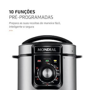 A Panela de Pressão Elétrica Pratic Cook 5L Mondial tem 5 Litros de capacidade, na medida certa para toda a família. Possui painel com fácil acesso às 10 funções pré-programadas, válvula de segurança e cuba removível com revestimento antiaderente. O design em inox é sofisticado e garante mais durabilidade ao produto.