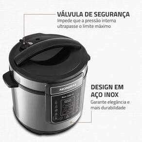 Panela Elétrica Mondial 6L PE-60-6L-I Inox 127V Com a Panela Elétrica Digital Master Cooker 6L, você pode preparar diversas receitas, que vão muito além de feijão. Sua versatilidade é um ponto forte: as 14 receitas predefinidas facilitam o preparo de uma variedade de pratos, desde arroz e carnes, até legumes e sobremesas. O painel digital é intuitivo e fácil de ler, descomplicando a operação. Possui acabamento impecável em aço inox para se destacar em sua cozinha. Características:ean: 7898578154132Marca: MondialModelo: PE-60-6L-ICor: Preto e InoxVoltagem: 127VPotência: 1000WCapacidade: 6 LitrosVálvula de segurança: Impede que a pressão interna ultrapasse o limite máximoCuba Antiaderente removível: Prática e de fácil limpeza com seu revestimento antiaderenteAjuste fino: Escolha à vontade o tempo de preparo idealAdiar início: Permite programar o funcionamento com até 24 horas de antecedênciaTampa com alça: Ergonômica e prática com trava de segurançaAcabamento em aço inox: Durabilidade e design sofisticado em um único produtoColetor de vapor: Recolhe a água condensada durante o funcionamentoDisplay Digital: Facilita a escolha das funções de tempo e receitas14 Funções Programáveis: Prepara as suas receitas de maneira fácil inteligente e seguraFunção Aquecer: Desliga automáticamente e mantém o alimento aquecidoCabo Elétrico removível: Praticidade para servir em qualquer lugarRegulamentação Inmetro: OCP0040Conteúdo da embalagem:01 Panela Elétrica Digital01 Colher01 Copo Medidor01 Manual Dimensões da Embalagem:Altura: 38cmLargura: 33cmProfundidade: 33cmPeso: 5,100KgGarantia: 12 Meses Marca: Não Informado Ean: 7898578154132