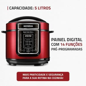 Garanta agora a Panela de Pressão Elétrica Digital Master Cooker Red 5L Mondial e transforme sua rotina com praticidade.