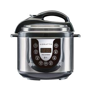 Segura, moderna, prática e bonita.Uma variedade de pratos ao seu dispor. As Panelas de Pressão Agratto são ideais para sua residência.Com dez itens de segurança as Panelas Agratto são muito mais seguras que uma panela de pressão comum. Podem ser usadas no preparo de diversos tipos de alimentos para cozinhar, refogar, fritar ou aquecer.? Painel eletrônicoCom timer eletrônico e diversas programações. ? Cuba antiaderente Com capacidade de quatro litros é removível e antiaderente. ? Mais segurança Dez itens de segurança para sua proteção e alça isotérmica. ? Corpo em inox e aço escovado. Um toque de beleza à sua cozinha. ? Pode ser levada à mesa Pode ser levada diretamente à mesa para servir a refeição. ? Conjunto para panelas Copo medidor, colher de alimentos e reservatório de água. Potência 800WGarantia 12 mesesVoltagem 220v