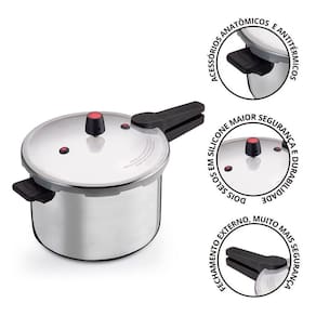 Panela de Pressão Fechamento Externo 10 Litros Pensando em facilitar seu dia a dia na cozinha, essa panela de pressão foi desenvolvida para ser sua aliada nesses momentos. Conta com um fechamento externo, praticidade no uso trazendo principalmente a segurança que você precisa ao cozinhar. A panela é feita em material super resistente, auxilia para conservar os aromas e sabores dos alimentos, assim você pode desfrutar de suas deliciosas refeições, com o prazer que a panela proporciona. O material feito de alumínio é um excelente condutos de calor, os alimentos cozinham muito mais rápido, comparando com outros metais. É confortável e leve, possibiltando que você leve-a onde quiser. Torne o momento ainda mais especial com a refeição preparada na panela de pressão. - O fechamento externo foi desenvolvido pensando em sua segurança ao cozinhar, sendo muito mais seguro em caso de alta pressão. - O cabo foi fabricado em baquelite, este material é mais durável e resistente a altas temperaturas. - O material de aço polido permite que os alimentos sejam cozinhados com mais rapidez. ESPECIFICAÇÕES: Material: Aço Polido Dimensões: 38cm diâmetro x 22cm altura Peso: 2,498kg Cor: Cinza Capacidade: 10 Litros - CABO EM MATERIAL RESISTENTE. - FECHAMENTO EXTERNO. CONTÉM: 01 Panela de Pressão 10 Litros com fechamento externo