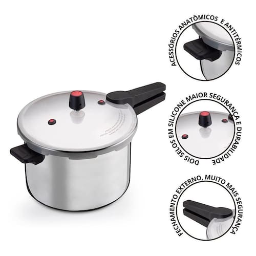 Panela Fechamento Externo 10 Litros Panela - Sua Aliada na Cozinha Desenvolvida para facilitar seu dia a dia na cozinha Fechamento externo para maior segurança durante o cozimento Material de alumínio que cozinha os alimentos mais rapidamente Leve e confortável, ideal para levar a qualquer lugar Conserva os aromas e sabores dos alimentos, proporcionando refeições deliciosas Cabo em baquelite, durável e resistente a altas temperaturas Aço polido que garante cozimento rápido e eficiente A Panela transforma o preparo das suas refeições em momentos especiais, garantindo praticidade e segurança. Desfrute do prazer de cozinhar com qualidade Especificações: Material: Aço Polido Dimensões: Diâmetro: 25cm x Altura: 22cm Peso: 2,498kg Cor: Cinza Capacidade: 10 Litros Conteúdo: 01 Panela 10 Litros com fechamento externo Marca: Não Informado