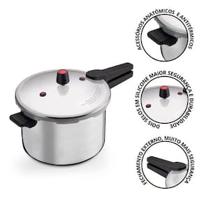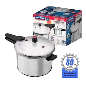 Feita em alumínio, nossa panela de pressão possui travas na tampa para vedação completa e duas válvulas adicionais para saída de pressão em caso de obstrução da válvula principal, o que proporciona maior segurança e tranquilidade para você durante o uso. Certificada pelo INMETRO, trabalha sob pressão de 80 Kpa, acima da média de outras panelas, fazendo com que o seu alimento cozinhe muito mais rápido!Seu modelo de fechamento externo facilita na hora de abrir e fechar, sem o risco de a tampa entrar em contato com o alimento. Além de tudo isso, possui um design lindo!