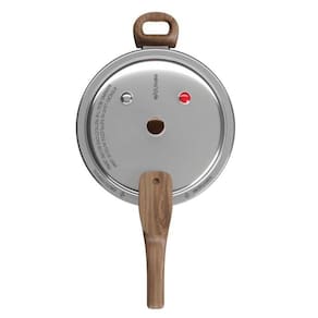 Panela de pressão em alumínio com espessura de 2,5 mm, revestimento cerâmico antiaderente, fundo de indução. Possui quatro sistemas de segurança, cabo baquelite antitérmico soft touch amadeirado. Compatível com fogões a gás, elétricos, vitrocerâmicos e de indução.Acompanha copo