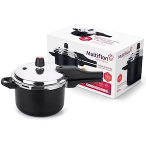 Com a Panela de Pressão de Quartzo 4.5L na cozinha você vai ter mais agilidade e economia no cozimento, reduzindo o tempo pela metade, excelente relação custo x benefício. Quatro sistemas de segurança (válvula de trabalho, válvula de travamento automático, válvula de segurança e sistema lateral de segurança. Sistema de abertura facilita o manuseio do alimento. Exclusivo antiaderente QUARTZO, são 6 camadas de antiaderente reforçado com partículas de cerâmica e desenvolvido para uso intensivo. Cor: Preta Material: Alumínio Medidas: 40,2cm Comp. X 23,2cm Alt. X 22,3cm Larg. Peso: 1,61kg
