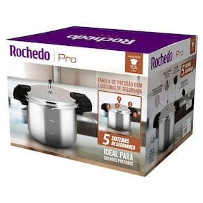 Máxima segurança A Rochedo PRO conta com 5 sistemas de segurança que garantem um uso tranquilo e confiável, prevenindo acidentes e proporcionando um cozimento seguro em qualquer situação. O design reforçado impede o acúmulo excessivo de pressão e libera o vapor de maneira controlada.