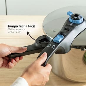 - Fundo Triplo De Indução - Pode ser usada em todos os tipos de fogões - Válvula de segurança que controla a pressão interna - Não levar ao micro-ondas, forno convencional ou freezer - Tampa fecha fácil que garante o fechamento correto da tampa - Trava interna (abertura somente após o término da pressão interna) - Indicador de pressão (pino interno na cor vermelha indica se a panela está sob pressão) - Janela de segurança que libera o excesso de pressão em caso de entupimento nos demais sistemas
