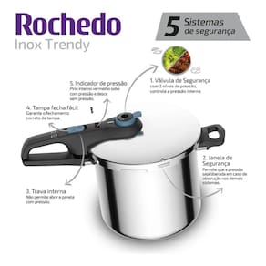 PANELA DE PRESSÃO INOX DE INDUÇÃO TRENDY FECHAMENTO EXTERNO ROCHEDO - 8 LITROS