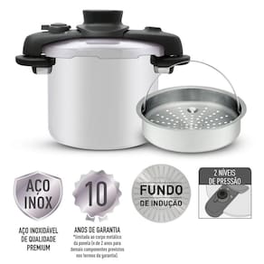 Compatível com indução e demais fontes de calor, a panela de pressão possui fundo triplo que distribui o calor uniformemente, resultando em um cozimento mais rápido e homogêneo.