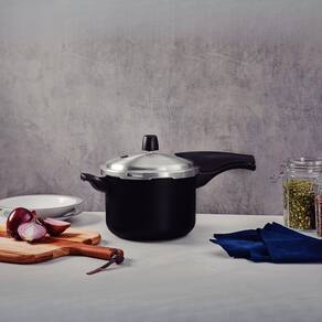 Com a panela de pressão Tramontina Vancouver Effect em alumínio com revestimento interno e externo em antiaderente Starflon Max preto 20 centímetros de diâmetro 4,5 litros você ganha um aliado de alta qualidade para o preparo das suas refeições. Com ela, suas receitas serão um sucesso absoluto e ficam prontas com maior rapidez. Com tampa de alumínio com acabamento externo polido e interno satinado, ela proporciona um encaixe perfeito e mantém a pressão ideal durante todo o preparo das refeições. Para garantir sua segurança, a panela conta com alças e cabos superiores e inferiores em baquelite antitérmico, oferecendo assim, maior conforto e estabilidade ao manuseá-la. Versátil, ela ainda pode ser utilizada em diferentes tipos de fogões, sejam eles a gás, elétricos ou vitrocerâmicos - resistência elétrica. Escolha as panelas de pressão Tramontina Vancouver e tenha um item que se adapta ao seu estilo de vida na cozinha e eleva suas habilidades culinárias!