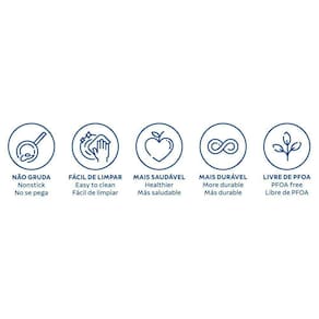 Mais Informações - Corpo de alumínio com espessura de 3,2 mm que proporciona cozimento rápido e uniforme.Com revestimento interno e externo de antiaderente Starflon Max que não gruda, é fácil de limpar, mais durável e não é prejudicial à saúde.Tampa de alumínio com acabamento externo polido e interno satinado.Alças superior e inferior de baquelite antitérmico que oferecem segurança durante o manuseio.