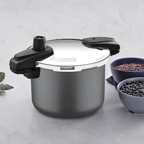 Receitas que exigem tempo agora podem ser preparadas com muito mais agilidade. A panela de pressão Tramontina Arizona Induction, com 20 cm de diâmetro e 4,5 litros de capacidade, foi pensada para simplificar o preparo dos pratos do dia a dia. Produzida em alumínio com revestimento interno e externo em antiaderente Starflon Max titânio, distribui melhor o calor e evita que os alimentos grudem. Compatível com todos os tipos de fogões, inclusive por indução, ela conta com alças de baquelite antitérmico e tampa em alumínio polido, que garantem segurança e manuseio confortável. Um item indispensável para quem busca mais agilidade na cozinha, sem abrir mão do sabor.