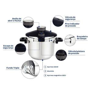 Panela Tramontina Inox Presto Com Fundo Triplo 6 L Panela Aço Inox 6L Fundo Triplo Presto Tramontina A Panela Presto é extremamente segura e feita de aço 18/10 com fundo triplo, que permite um melhor cozimento. Com design moderno e estiloso, a panela possui uma válvula e escape de segurança e pino indicador , garantindo a eficiência e tranquilidade na preparação dos alimentos. O fundo triplo distribui o calor uniformemente, acelerando o processo de cozimento dos alimentos, economizando tempo e energia. Além disso, é resistente a corrosão e fácil de limpar, sendo perfeita para qualquer cozinha. - Feita em Aço Inox 18/10 - Fundo triplo - Mais durável - Economiza tempo e energia - Fácil de limpar - Mais segura Descrição Técnica: Marca: Tramontina Linha: Presto Material: Aço Inox Diâmetro: 22cm Capacidade: 6 Litros Fogões Compatíveis: A gás, elétrico, vitrocerâmico e indução Marca: Não Informado Ean: 7891116186411