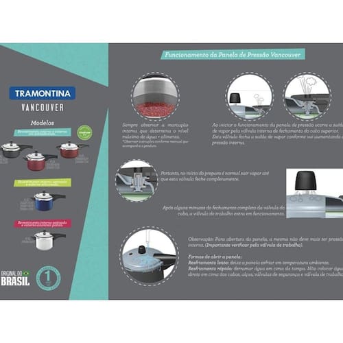 Composição: 01 Panela de pressão 3,0 litros. Informações Técnicas: Peso Líquido: 1,5200 kg. Peso Bruto: 1,7800 kg. Metragem: 0,015564 m³. Dimensões Embalagem (Compr. X Larg. X Alt.): 385x 245x 165 mm. Dimensões Produto (Compr. X Larg. X Alt.): 385x 245x 165 mm. Diâmetro: 20,0 cm. Capacidade: 3,00 l. Cabo de baquelite antitérmico com guarnição em aço inox. Informações Adicionais: Panela de pressão em alumínio com corpo com revestimento interno e externo de antiaderente Starflon T1 e tampa com acabamento interno satinado e externo polido, equipadas com alça e cabo. Tampa em alumínio com acabamento interno satinado e externo polido. Para maior segurança está equipada com válvulas de segurança. Proporciona um cozimento rápido e uniforme. Pode ser utilizado no fogão a gás, elétrico e vitrocerâmico. Seguindo as instruções de uso, a panela de pressão permanecerá bonita por muito mais tempo. Recomendações: Uso seguro e adequado: Para garantir a durabilidade da panela de pressão, recomenda-se evitar o uso de produtos abrasivos, como saponáceos, no processo de limpeza. Secá-la bem após a lavagem. Pode ser utilizado no fogão a gás, elétrico e vitrocerâmico.
