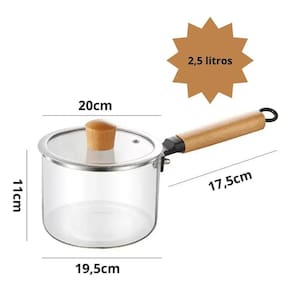 Descrição panela de vidro borossilicato 2,5 litros com tampa de vidro e cabo em madeira Importante: não recomendado o uso para fazer alimentos sem água. Produto é para ser utilizado sempre com água sopas, caldos, etc , não deve ser para fazer alimentos secos, fritura, etc pois pode quebrar/trincar a panela. Introduza a panela de vidro cabo madeira na sua cozinha e eleve a experiência culinária a outro nível com capacidade generosa de 2,5 litros, esta panela é confeccionada em vidro borossilicato, um material resistente ao fogo que suporta altas temperaturas, permitindo que seja Utilizado diretamente na chama. Imagine uma panela transparente com tampa que não só proporciona praticidade, mas também adiciona um toque de elegância à sua cozinha. Essa beleza funcional é ideal para o preparo de sopas, fervura de água e muito mais. Não apenas uma peça utilitária, mas uma adição estilosa à sua casa. Ao escolher a panela de vidro cabo madeira, você opta por um produto de alta qualidade, produzido com vidro borossilicato atóxico e ecologicamente correto, sendo totalmente livre de bpa, ftalatos, Cinza, metal e cádmio. Além disso, sua alta transparência não apenas permite que você monitore o processo de cozimento, mas também confere um toque moderno à sua cozinha. As alças de madeira evitam o superaquecimento, proporcionando segurança durante o uso. Vale ressaltar que a panela de vidro não é recomendada para o preparo de alimentos sem a presença de água, garantindo assim a durabilidade do produto. Com medidas aproximadas de 20cm x 11cm esta panela é perfeita para diversas aplicações, desde sopas reconfortantes até armazenamento prático. Cuide da sua panela seguindo as recomendações do fabricante, evitando choques térmicos e garantindo a longevidade do produto. Adquira agora a panela de vidro cabo madeira e experimente o prazer de cozinhar com elegância e eficiência. As informações detalhadas sobre o produto são de responsabilidade do fabricante/fornecedor, e a cobre apenas defeitos de fabricação, excluindo aqueles originados por mau uso. Transforme sua cozinha com esta peça única e desfrute de momentos culinários inesquecíveis Conteúdo da embalagem: 01 panela de vidro 2,5l com tampa de vidro e cabo de madeira do vendedor: 30 dias