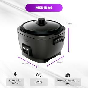- Potente e rápida – 700W que garantem arroz soltinho em menos tempo