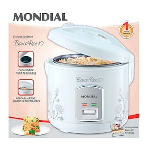 Panela elétrica bianca rice 10 pe-1010 xícaras 700w de potência Branca com detalhes florais Tampa basculante com válvula de saída de vapor Lâmpada-piloto Revestimento antiaderente Função cozinhar e aquecer Prepara arroz, legumes, risotos e muito mais. Potência 700w Consumo 0,7kw/h Material metal e pp Panela de arroz elétrica mondial pe-10 - 220v A panela elétrica bianca rice, da mondial é totalmente multifuncional. Possui 700 w de potência, tampa com válvula de saída de vapor e indicador de nível de água. Contém também revestimento antiaderente e as funções cozinhar e aquecer, além de preparar diversos pratos, como arroz, legumes e risotos muito mais praticidade na hora de cozinhar e servir seus alimentos, já que ela pode ser levada diretamente à mesa características: marca: mondial referência: 4210-01. Modelo: pe-10 material: polipropileno e metal. Potência: 700 w. Quantidade de xícaras: 10 xícaras. Prepara: arroz, rizotos e legumes. Temperatura: máxima 1 mantém os alimentos aquecidos: sim tampa com saída de vapor: sim possui grelha: não possui bandeja: sim indicador do nível de água: sim trava de segurança: não alças: sim pés: sim antiderrapantes. Luz indicadora: sim consumo aproximado de energia: 0,7 kw/h. Controle de temperatura: não timer: não pode ser utilizada na base itens inclusos: 1 panela elétrica dimensões: altura: 28 cm largura: 28,2 cm profundidade: 28,3 cm peso: 2,680 kg garantia do fornecedor; 12 meses