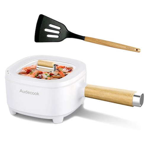 Audecook A panela elétrica 2L é muito conveniente de usar, você pode usar esta panela para satisfazer diferentes estilos de cozimento: panela quente, bife, macarrão, ovos, paella. É uma panela elétrica indispensável para o seu primeiro apartamento, hotel, trailer, dormitório. Mergulhe na bela vida na cozinha! - Panela elétrica 2L – A panela elétrica Audecook de 20 cm com borda alta de 5,3 cm é projetada para fins profissionais de várias cozinhas. Vitaminas e nutrientes essenciais não são perdidos e mantêm um sabor intenso. - Frigideira elétrica multifuncional - panela elétrica Audecook com fonte de alimentação dupla no final, permitindo que você controle facilmente a temperatura para satisfazer diferentes necessidades de cozimento: baixa potência (350 W) para fazer omeletes, ramen, panqueca; Alta potência (800 W) para cozinhar salmão no vapor, batatas fritas, cozinhar panela quente, refogar legumes e bifes. Pode ser uma boa escolha de presente para aqueles que amam cozinhar. Cozinhe e refogue sem fogão a qualquer momento! - Revestimento antiaderente saudável – O interior da panela elétrica Audecook é feito de liga de alumínio de dureza 8h, durável e fácil de limpar, mesmo sem pressão com escova de arame. A superfície tem um revestimento antiaderente de esmalte cerâmico de grau alimentício, livre de PFOA. Permite que o alimento flua suavemente na superfície da frigideira sem grudar. Cozinhe alimentos mais saudáveis com menos óleo! - Aquecimento rápido e uniforme – Audecook base de aquecimento anular exclusiva de 360° de uma panela quente permite que sua comida aqueça mais rapidamente e uniformemente nesta superfície antiaderente. Além disso, a panela com plugue melhorou a proteção contra superaquecimento. O desligamento automático será acionado quando a panela exceder 180 °C, protegendo efetivamente a panela do superaquecimento. - Portátil e estável – A mini panela quente Audecook é perfeita para trailers, viagens, dormitórios, apartamentos, hotéis e acampamento. O tamanho pequeno e o peso leve o tornam muito conveniente de transportar, e seu design antiderrapante de quatro pernas e design de equilíbrio do corpo da panela podem efetivamente evitar escorregões e tombamentos.