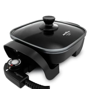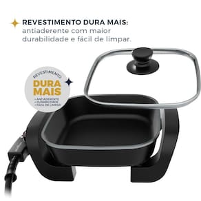 A Panela Elétrica Britânia 2L 5 Temperaturas 650W BPE02A é a companheira ideal para quem busca praticidade e sabor na cozinha. Com ela, você prepara desde um delicioso café da manhã até um jantar completo, sem se preocupar com a bagunça e a limpeza. Com capacidade de 2 litros, a Panela Elétrica Britânia é perfeita para preparar refeições para toda a família. Seu revestimento antiaderente facilita a limpeza e garante que seus alimentos não grudem. Além disso, as alças com toque frio proporcionam segurança durante o manuseio, evitando queimaduras. Desenvolvida com 5 níveis de temperatura ajustáveis, permitem que você escolha a temperatura ideal para cada tipo de alimento, ou seja, garante resultados perfeitos. Já a tampa de vidro temperado permite que você acompanhe o preparo dos alimentos sem precisar abrir a panela. Transforme a sua cozinha com a Panela Elétrica Britânia BPE02A! Tenha mais praticidade, segurança e sabor em suas refeições. • Revestimento: Base água • Potência: 650W • Seletor de temperatura: 5 níveis de temperatura máxima até 230 graus • Capacidade (L): 2L • Tampa com saída de vapor • Material da tampa: Vidro temperado • Alças: Alças laterais com toque frio • Pés antiderrapantes • Luz indicadora: Luz indicadora de aquecimento.