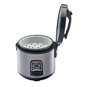 Panela elétrica multifuncional para arroz e legumes, com sistema de cozimento a vapor. Possui funções de cozinhar, aquecer e manter aquecido. Inclui dispenser para legumes. Materiais: Aço Antiaderente, Plástico, Vidro. Tampa com visor de vidro e alça. Trava e interruptor de segurança. Válvula de saída de vapor. Cabo de energia removível. Homologado pelo Inmetro.Lâmpada piloto