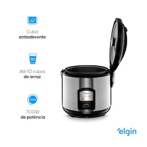 -Capacidade para até 10 xícaras. -Função manter aquecido; -Cuba antiaderente; -Acompanha colher; -Copo medidor e bandeja de preparo no vapor.Lâmpada piloto