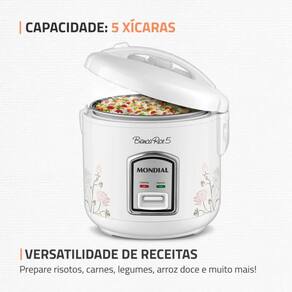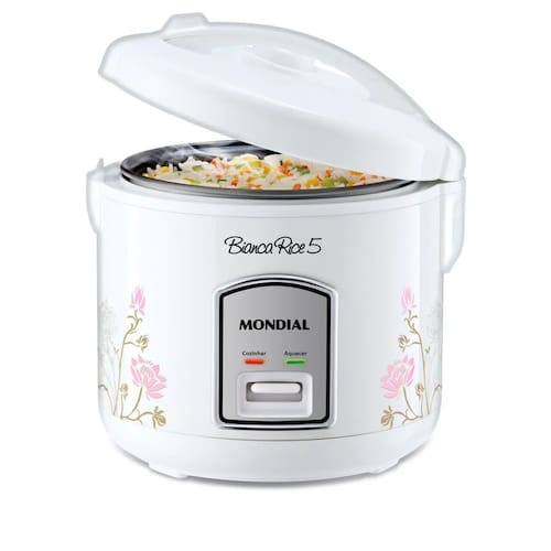 Com a Panela de Arroz Elétrica Mondial Bianca Rice 5, preparar refeições saborosas, saudáveis e na medida certa ficou ainda mais fácil. Com capacidade para até 5 xícaras, ela é ideal para o dia a dia de famílias pequenas e médias, entregando praticidade desde o preparo até a limpeza. Moderna e funcional, conta com cuba antiaderente removível, função aquecer automática e acessórios extras, como colher, copo medidor e cesto cozi vapor – tudo pensado para facilitar sua rotina na cozinha.