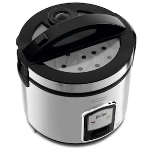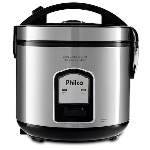 A panela elétrica PH5 Visor Glass, da Philco, é fabricada em materiais de alta qualidade para garantir durabilidade e resistência durante seu uso. Muito moderna, conta com tigela com revestimento antiaderente, encaixe para colher, tampa com vedação, alça, botão de travamento e saída de vapor, sistema de aquecimento automático que mantém o alimento aquecido após seu preparo, cordão elétrico removível que permite levar a panela à mesa, facilitando o momento de servir, luzes indicadoras de funcionamento e coletor de água proveniente do vapor da tampa, oferecendo mais segurança em seu manuseio. Apresenta exclusiva tampa de vidro que possibilita acompanhar o preparo dos alimentos, acabamento em aço inox extremamente bonito e, para maior praticidade, acompanha colher para servir, copo medidor e bandeja para cozimento à vapor, atendendo à diversas necessidades. Prática, prepara uma refeição completa em poucos minutos, fazendo arroz, risotos, legumes e verduras à vapor. Para completar, prepara até 5 xícaras de arroz, facilitando sua rotina diária para servir toda a família com elegância e sofisticação.