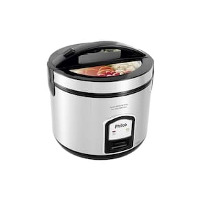 Panela elétrica para arroz com capacidade de 5 xícaras, tampa com visor de vidro, panela antiaderente e coletor de água.Lâmpada piloto