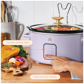 Panela elétrica de cozimento lento com capacidade de aproximadamente 4 L, adequada para preparar porções para pequenas famílias, ensopados, sopas e receitas em baixa temperatura ao longo de várias horas. O painel digital com acionamento por toque oferece modos de cozimento em baixa e alta temperatura, além de função manter aquecido automática ao fim do ciclo.