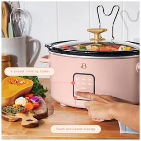 Panela elétrica de cozimento lento com capacidade de aproximadamente 4 L, adequada para preparar porções para pequenas famílias, ensopados, sopas e receitas em baixa temperatura ao longo de várias horas. O painel digital com acionamento por toque oferece modos de cozimento em baixa e alta temperatura, além de função manter aquecido automática ao fim do ciclo.