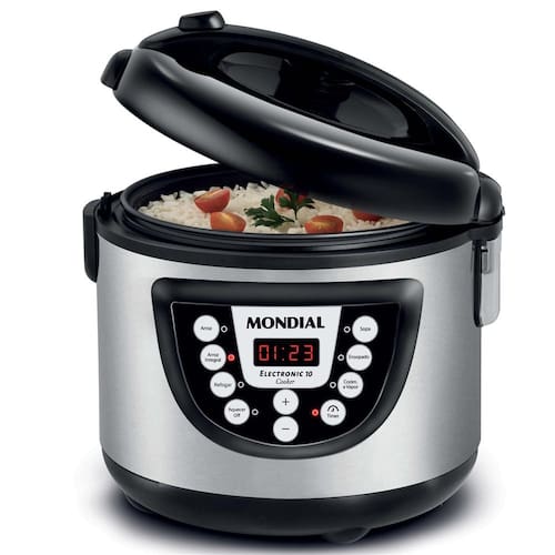 - Multifuncional - Painel Digital - Acompanha acessórios para cozimento à vapor - Revestimento antiaderente - 6 funções programáveis: arroz, arroz integral, sopa, ensopados de carne e frango, refogar e cozimento a vapor - Função aquecer - TimerTipo