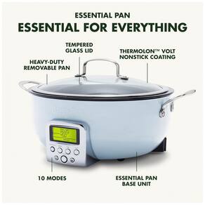 Design 10-em-1: A GreenPan oferece funções como fritar, preparar molhos, sopas, cozinhar no vapor, ferver, aquecer, selar/refogar, além de cozinhar arroz branco, arroz integral e grãos, tudo em um só aparelho.