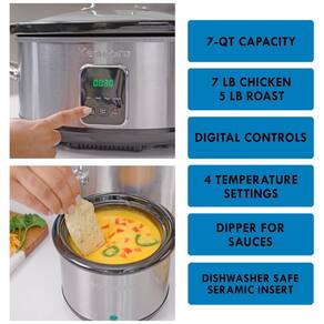 Panela Elétrica Programável 6,6L com Aquecedor de Molhos e Tela Digital em Aço Inoxidável, 110V 38W, Kenmore, Prata - Panela Elétrica Programável Kenmore