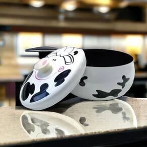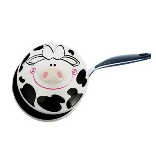 A Panela de Vaquinha apresenta um design encantador na cores preta e branca e com estampa de vaquinha, que vai conquistar o coração dos amantes da culinária e da fofura.