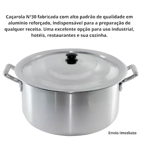Caçarola Panela Industrial Alumínio Nº 30Caçarola fabricada com alto padrão de qualidade em alumínio reforçado, indispensável para a preparação de qualquer receita. Uma excelente opção para uso industrial, hotéis, restaurantes e sua cozinha.Descrição do Produto:- Alta qualidade e durabilidade.- Fabricado em alumínio.- Alça laterais reforçadas.- Acompanha Tampa.Itens Inclusos:- 01 Caçarolas Alumínio Hotel- 01 Tampas AlumínioCaçarola 30 Medidas (Aproximadas):- Altura: 14,5 cm- Diâmetro: 30 cm- Espessura: 2mm- Capacidade: 9 litros Marca: Panela industrial