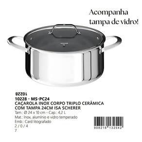 Panela Inox 24Cm Antiaderente Cerâmica Tripla Isa Scherer