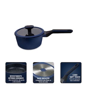 Panela Marine Hercules Redonda Antiaderente Ceramica Indução Azul 16x8cm 1,5L Descrição: Do fogão à mesa com sofisticação A escolha perfeita para quem busca praticidade sem abrir mão de um design sofisticado e vibrante. Com um visual moderno e cheio de personalidade, a linha Marine Hercules traz elegância e inspiração para o seu dia a dia. Deixe sua cozinha mais linda e funcional O azul intenso, combinado ao revestimento antiaderente cerâmico, garante uma distribuição de calor impecável, permitindo o preparo de receitas mais saudáveis, com menos óleo. Fabricada em alumínio fundido, cada peça é sinônimo de resistência e durabilidade. Compatível com todos os tipos de fogões - halogênio, convencional e indução - sua base especial oferece versatilidade, adaptando-se a diversas fontes de calor. A pintura resistente a altas temperaturas preserva a estética da panela ao longo do tempo. A linha Marine Hercules é a escolha ideal para quem busca unir modernidade, qualidade e elegância na cozinha. Descubra a linha completa de panelas Hercules e leve para sua casa o melhor em design e funcionalidade. todas as panelas Hercules possuem certificação INMETRO e são perfeitas tanto para quanto doméstico.. Características: - Corpo Em Alumínio De Alta Espessura e Cabo em Baquelite - Espessura: 4mm - Revestimento Antiaderente Cerâmico - Fundo Triplo Especial: Distribui O Calor Uniformemente - certificação INMETRO - Resistente e Durável - Tamanho: 16 cm Altura: 8,5 cm Capacidade: 1,4 L Pode ser utilizado em: - Fogão de Indução - Fogão Convencional - Fogão Halogênio - Forno 180C - Lava Louças Especificações: Marca: Hércules; Modelo: Marine Hercules PA4000-P16AZ; : 3 meses. ---- Aqui na Casa & Tendência você encontra os melhores utensílios domésticos e tudo que você precisa para sua cozinha ---- Marca: Não Informado