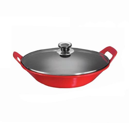 Panela Mineira Risoto Vermelha de Ferro Fundido TV 36cm 5L A Panela Risoto Vermelha Alça de Ferro da Panela Mineira é um produto moderno, prático e eficiente, que apresenta alto desempenho no preparo de diversas receitas. O calor distribuído por toda a superfície faz com que o alimento cozinhe de maneira uniforme, conservando suas propriedades e nutrientes. Possui um design elegante, com base oval e bordas alongadas, o que a torna excelente para grelhar, fritar, cozinhar e, principalmente, servir. Ideal para risotos, peixadas, carnes, ensopados e muito mais. Onde usar: Pode ser utilizada em fogões a gás, a lenha, elétricos, cooktops de indução, vitro-cerâmicos, fornos, grills, churrasqueiras e fogo de chão. Como é feito em ferro fundido, aconselha a utilizar luva térmica ou pano. Orientação de Uso e Conservação:Antes do primeiro uso: Lave com água e sabão, seque bem com um pano e leve ao fogo para remover toda a umidade. Já vem pronta para uso, então não precisa ser curada. Guarde em um local seco. Após cada uso: Lave com água e sabão, usando uma esponja ou escova para remover todos os resíduos de alimentos. Se restarem resíduos, ferva água com um pouco de detergente para soltá-los. Pintura: Revestimento atóxico que garante durabilidade e proteção prolongada, sem causar nenhum dano à saúde. Pode ser utilizada no forno, porém, é importante ressaltar que a exposição ao calor elevado pode danificar a pintura, causando manchas ou queimaduras na superfície externa. Características Técnicas e Medidas:Altura com Tampa: 16,5cm.Tampa: Vidro Temperado.Altura sem Tampa: 8cm.Material: Ferro Fundido.Alças: Alça de Ferro.Modelo: Redondo.Diâmetro: 36cm.Peso: 6,95Kg.Litragem: 5L.Linha: CHEF. Itens Inclusos:01 Panela Risoto Vermelha e Alça Panela Mineira 36x8cm 5L.01 Tampa de Vidro Temperado 36cm.01 Batoque em Platinela. Código: 4548PMProdutoLojaPlast.