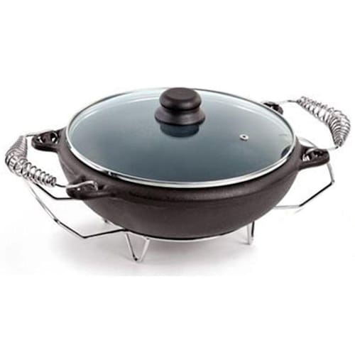 01 panela moqueca ferro fundido 01 tampa de vidro 01 suporte