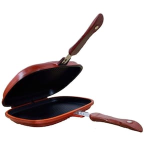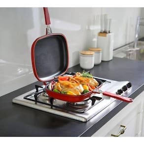 Frigideira dupla, feita de alumínio com revestimento antiaderente, permite que os alimentos sejam cozidos de forma uniforme, por dentro e por fora. Além disso reduz o uso do óleo, deixando as refeições ainda mais saudáveis.