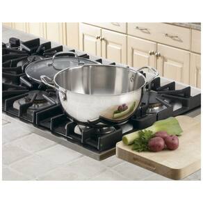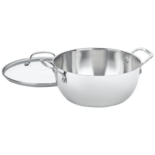 A panela multiuso Cuisinart Chefs Classic Stainless é inspirada nas grandes cozinhas francesas e fabricada com os melhores materiais disponíveis para executar perfeitamente todas as técnicas clássicas de cozinha. Projetada para durar a vida toda, ela torna as refeições em família memoráveis e divertidas um prazer. A base encapsulada em alumínio com design exclusivo proporciona condutividade térmica superior e distribuição uniforme de calor para atender às demandas de chefs gourmet em todos os lugares. Esta panela multiuso facilita o preparo de uma variedade de refeições simples, desde misturas de vegetais e aves até sopas ou ensopados substanciais. O conteúdo da caixa inclui a panela multiuso de 5,2L e tampa de vidro transparente. As alças do bastão gelado de aço inoxidável fundido são contornadas para uma pegada segura e projetadas para permanecerem frescas no fogão. A superfície de cozimento em aço inoxidável não descolora, não reage com os alimentos nem altera os sabores. As tampas de aço inoxidável bem ajustadas se ajustam perfeitamente para reter sabor, textura e nutrientes. As bordas dos utensílios de cozinha são cônicas para tornar o derramamento limpo e fácil. A panela é segura para uso no forno até 260ºC e para armazenamento de alimentos no congelador. Pode ser lavada na máquina de lavar louça para uma limpeza fácil. Este produto não contém BPA.