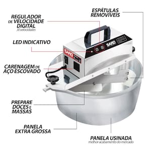 A Panela com Misturador Elétrico é a aliada perfeita para facilitar suas preparações culinárias! Com seu design prático e funcional, ela conta com um misturador elétrico integrado, proporcionando agilidade e eficiência no momento de misturar ingredientes. O regulador de velocidade permite ajustar a intensidade da mistura conforme a necessidade da receita. Com capacidade de 10 litros, é ideal para preparar abundância de alimentos. Agilize o processo de preparo de massas, cremes e outros alimentos com a panela com misturador elétrico. Escolha praticidade e qualidade em suas receitas com a SARO!